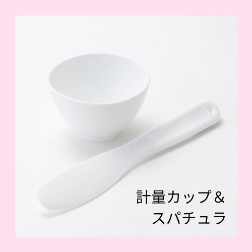 WエナジーCO2ジェル(30回分)の専用計量カップと、ジェル2液を混ぜるのに使用し、そのままお顔に塗布が出来るスパチュラです。