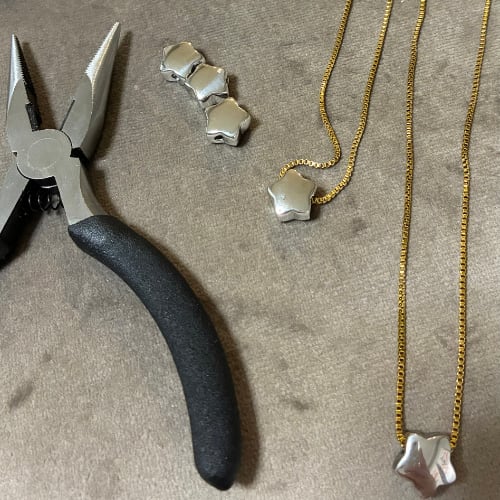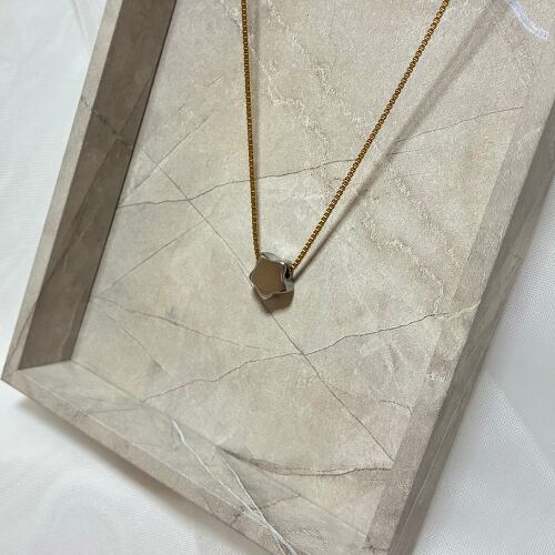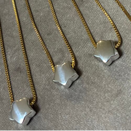 ペンダントトップのスターはステンレス304素材で、シルバーの色味にしました!