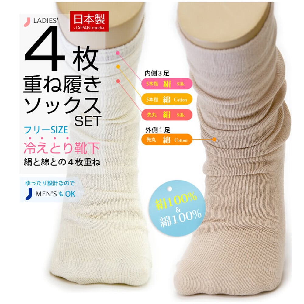 大人気、大注目の冷えとり重ね履きソックス4足セットです。
