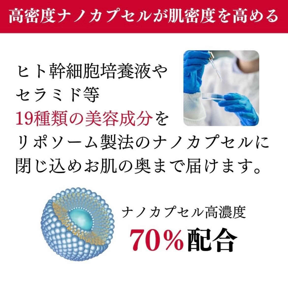 美容成分を閉じ込めたナノカプセルを70%も配合したスペシャルクリーム。内側からギュッとハリを高め、すっきり引き締まったファイスラインへと導きます。